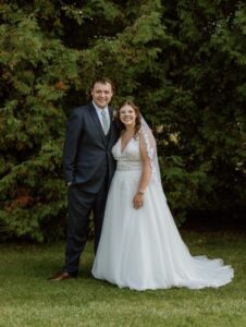 “Summer of 2018, at Swift Nature Camp. Justin was already there, working from staff training through the first session. I joined for the second session, and Justin likes to joke that the moment he saw me in the staff lounge, he knew his life had just gotten a whole lot better. We connected right away, and before we knew it, we were both throwing out those flirty vibes as counselors that summer. Honestly, we just kept coming back year after year because our friendship brought so much joy to one another’s life. It felt like every summer just deepened our bond. We even developed our own routine – leading the knots and lashing activity, running fun nights, using every night off to share jokes, all off time we tried to schedule together, and planning night events for campers. Bring joy to our campers became a shared passion. Fast forward to 2021, and we finally decided to make it official and start dating. Then, in 2025, we got married and we invited so many people from camp who have seen us grow from awkward young adults to a real husband and wife.” – Amber